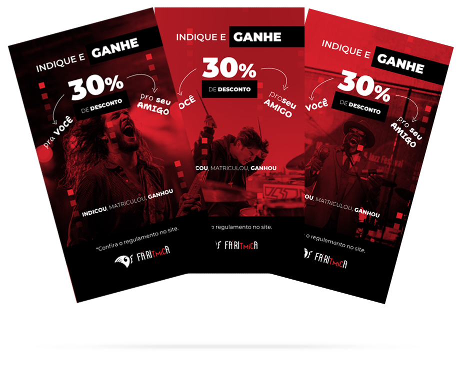 Indicando um amigo, vocês ganham juntos 30% de desconto na mensalidade.